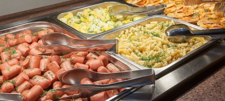 Элементы шведского стола: каши, салатбар.