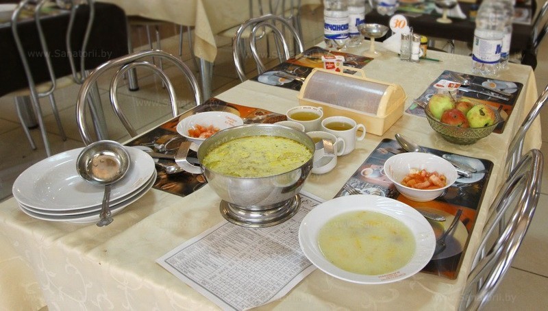 По средам Вы можете попробовать блюда национальной Белорусской кухни. Ежедневно на ужин (кроме субботы) гостям санатория предлагается свежая выпечка, которая готовится в кондитерском цехе, расположенном на территории здравницы.